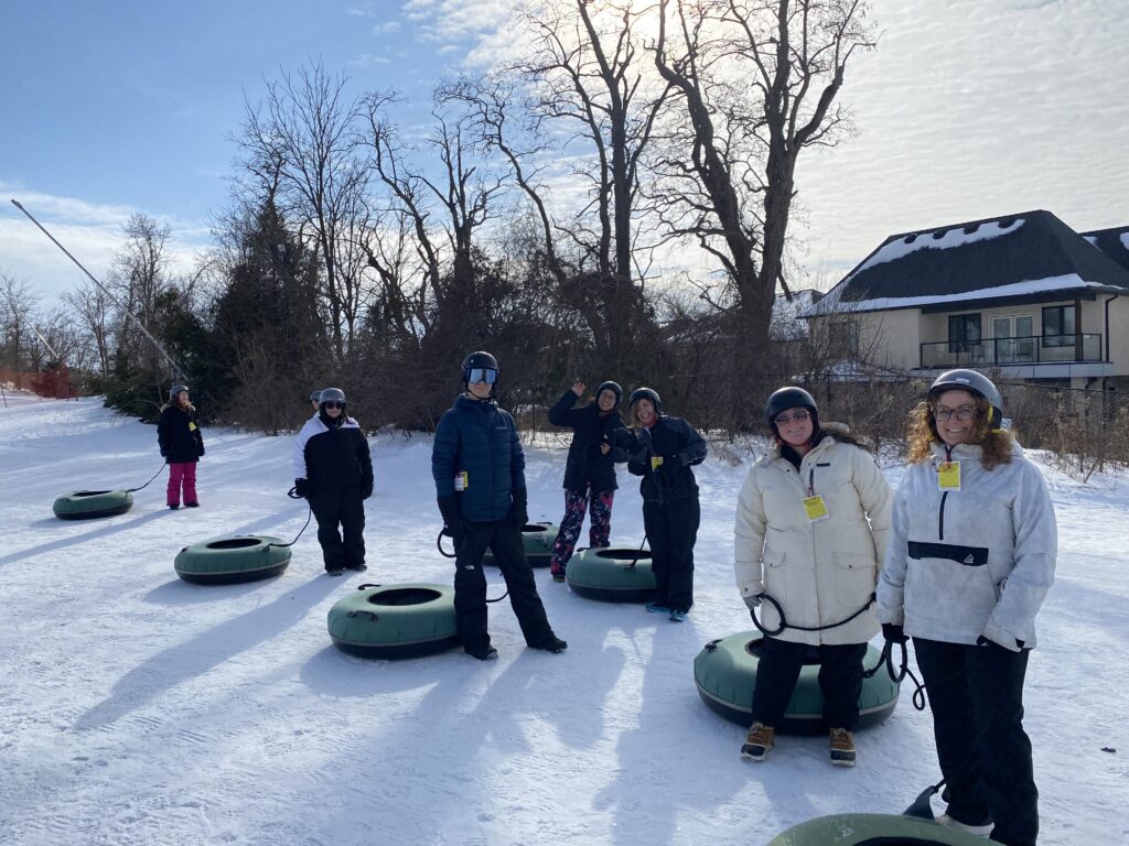 The Wellness Committee put together a staff event on Tuesday, February 11th at Boler Mountain. More than 60 staff turned up to enjoy a beautiful day filled with good food, lots of joyful laughter, and a few twirling, thrilling trips down the tubing hill.